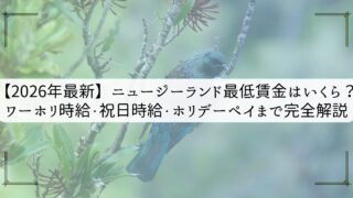 未分類 【2026年最新】ニュージーランド最低賃金はいくら?ワーホリ時給・祝日時給・ホリデーペイまで完全解説 こんにちは!オーストラリアワーホリ後、ニュージーランドワーホリを経て現在は日本でキャリア形成中のRuruです☺︎ブログを閲覧いただきありがとうございます。早速本題ですが、現在、「ニュージーランドの最低賃金は時給23.5NZドル」です。そして... 2026.03.03 未分類