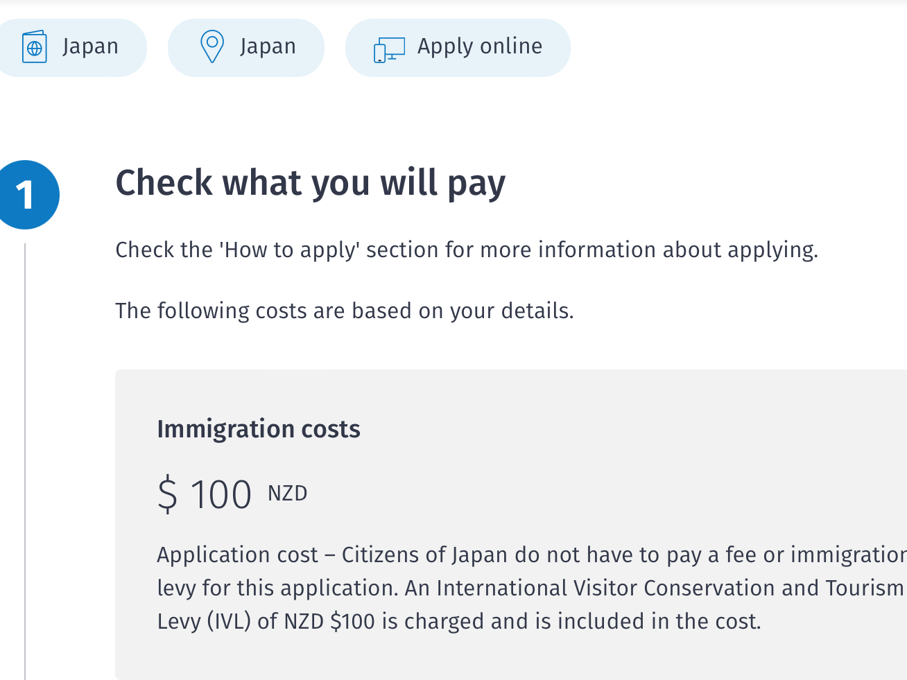 ニュージーランドのビザ申請料は700ドルからと明記されていますが、
